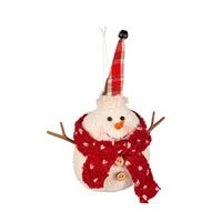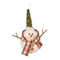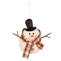 Fabric Snowman Ornament with Branch Arms in Tray