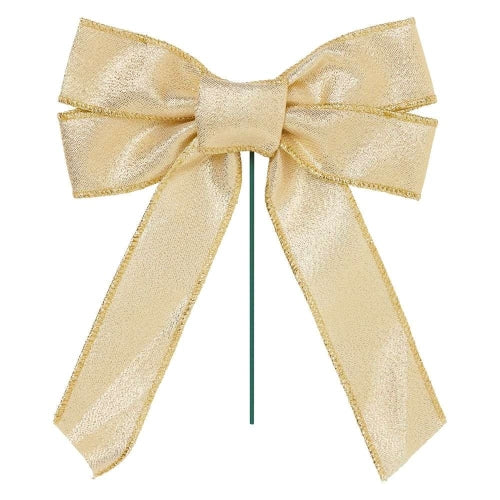 For the upcoming wintry and New Years event celebrations, you may want to get that festive look with our trendy metallic gold twist bow pick for your custom urns or wreaths.