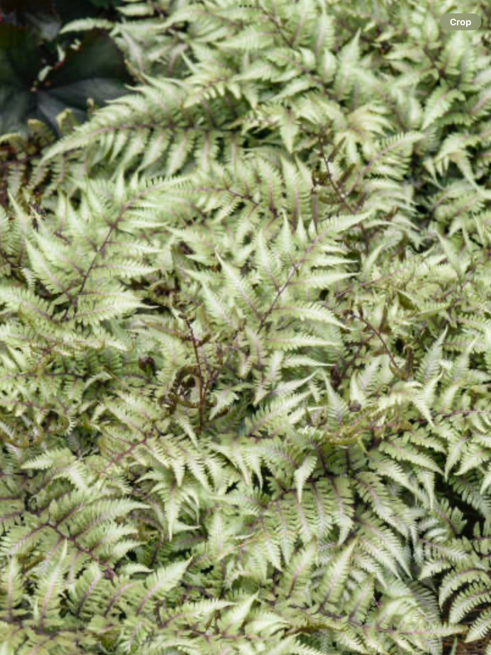 A giant painted fern! It forms a massive, arching clump of silvery fronds with green highlights and dark purple stems. Like the Lady Fern, ‘Godzilla’ spreads slowly when it is happiest in moist, loamy soils.