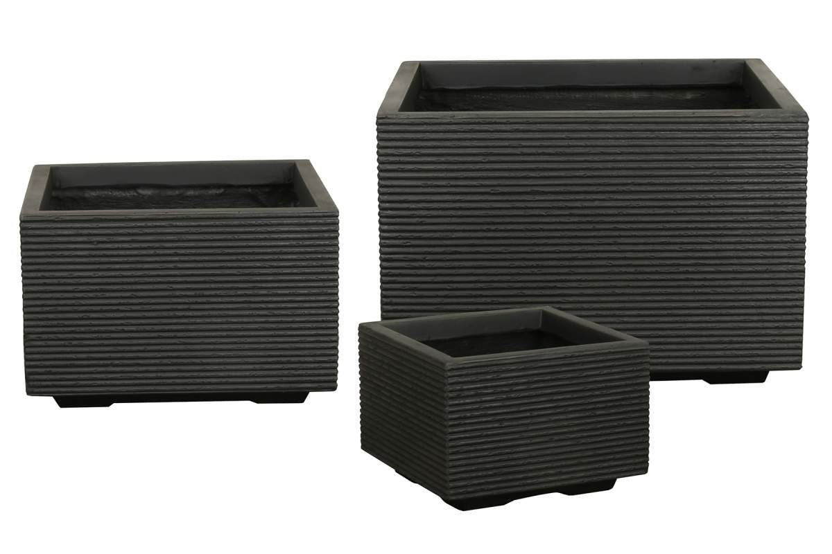 Black square pots are made of fiber clay, suitable for all types of flowers or artificial plants. Its modern look makes it a very popular pot.