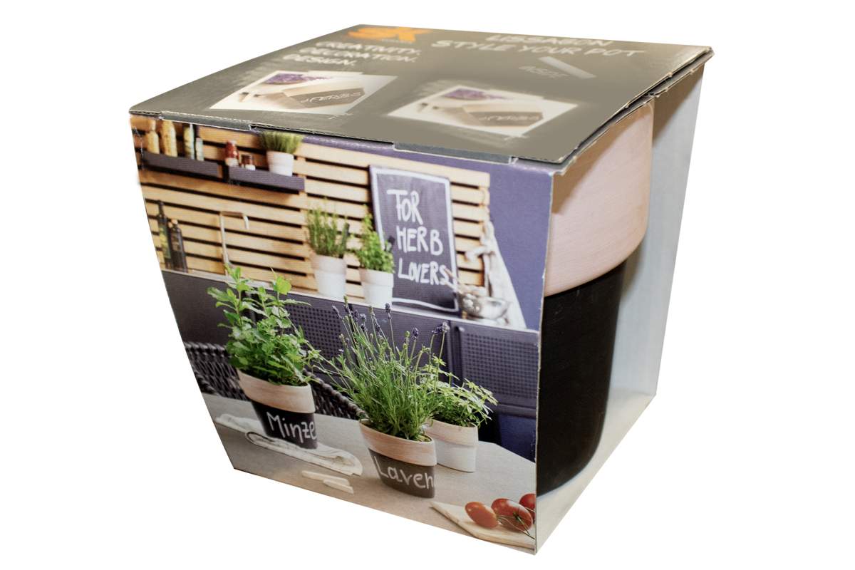 This collection has the ideal shape to grow most common herbs and complete the kitchen whether it is a rustic or a modern design. The upper rim of the vessel is made of natural terracotta, while the pot is coated with a matt blackboard paint, black or white, and can be individually inscribed however you wish! Ideally suited to Mediterranean culinary herbs such as basil, oregano, parsley and lavender, but many green and flowering plants can look their best in these cachepots.