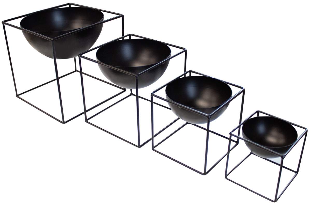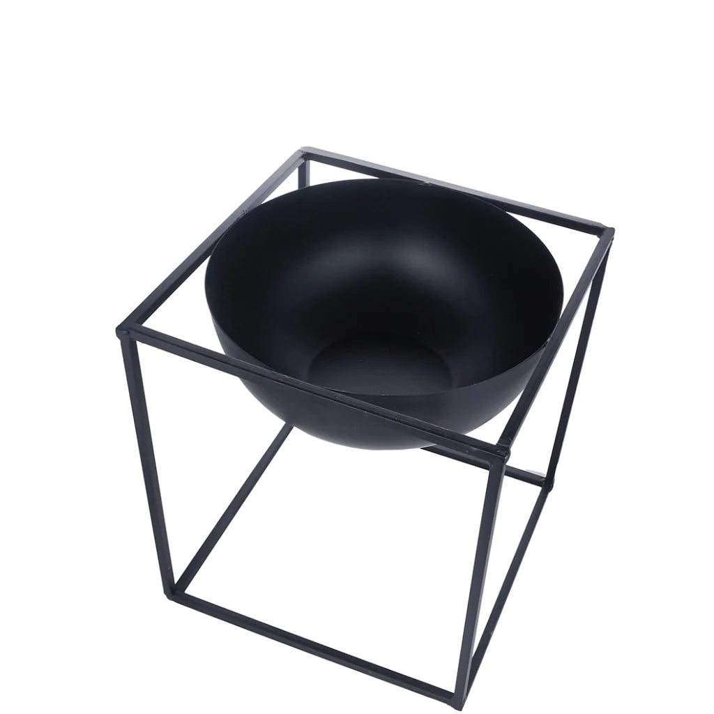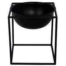 Black planter on metal stand. Elevate your faux plants in a sleek metal plant stand. Its dark finish and slim three-legged design is sure to make your green plant glam! Showcase your artificial houseplants in a modern way with this simple plant pot. Its metallic finish makes it an easy match for all styles of home decors. Simple yet stunning, this black metal plant stand will easily match with all of your decor.