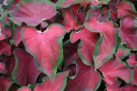 Hot 2 Trot caladium is a new red strap introduction from Classic Caladiums CEO, Dr. Robert Hartman. Hot 2 Trot starts out with shiny young leaves with a bright red center and constrasting green margins. Later emerging leaves may be less shiny. Hot 2 Trot is short to intermediate in height and it is wider than it is tall.