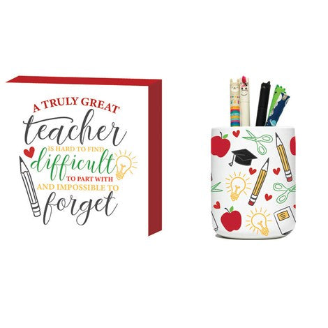 Ceramic Pencil Holder and Wood Tabletop Sign Set, A truly Great Teacher